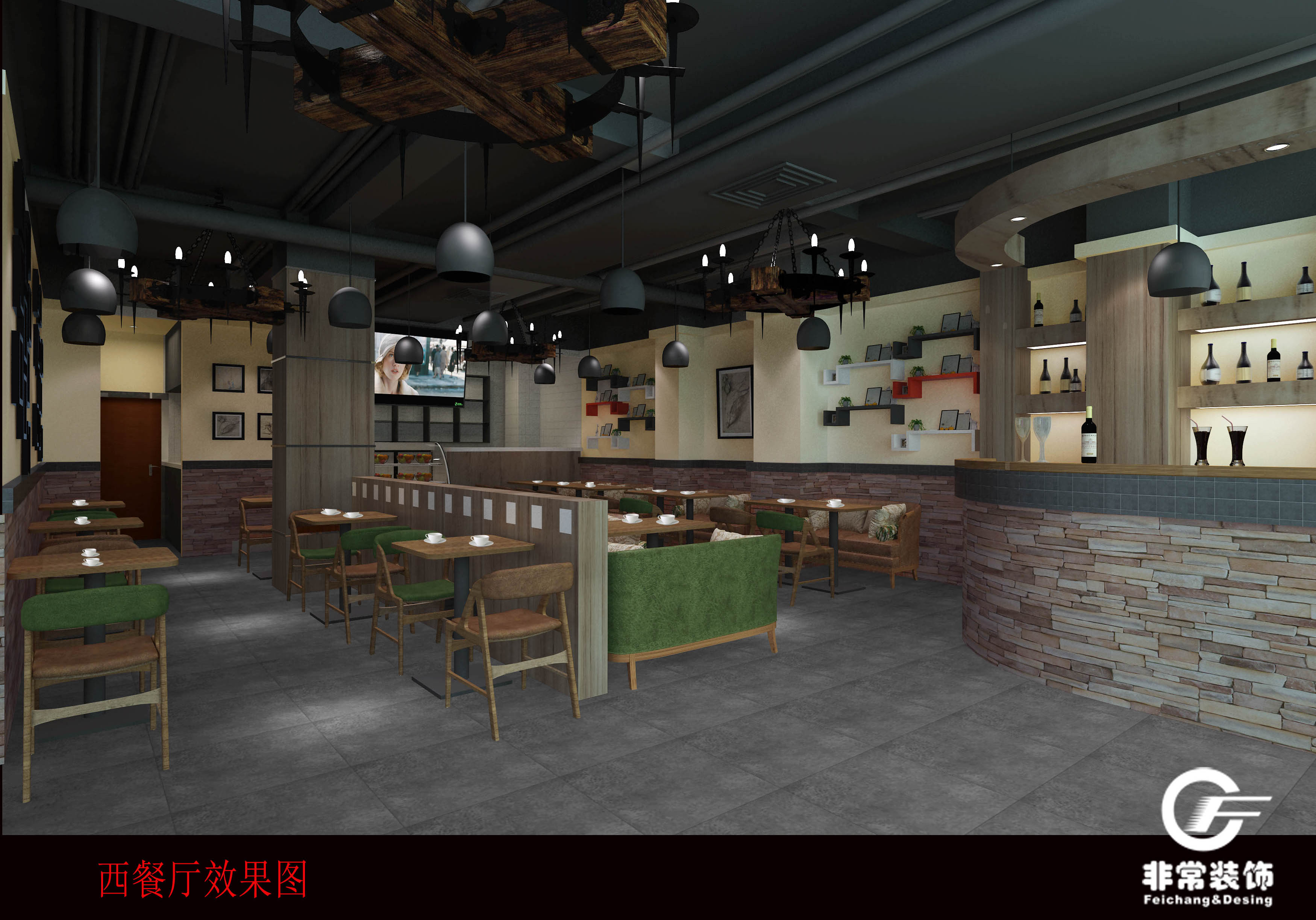 該西餐廳地址位于廣州市海珠區(qū)東曉南路,面積150平方米,設計方面按客戶的要求以黑色和灰色為主體,充分利用空間設計,現(xiàn)該項目設計圖已經與客戶確認,并且得到了客戶的贊賞和認可,施工圖已出,工程部也已經安排工人進場施工中,以下是設計圖: